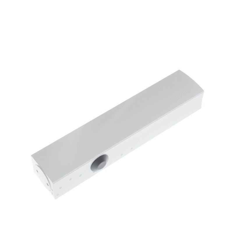 Доводчик EN1-6, для дверей весом до 120 кг, двухскоростной, демпфирование открывания - "ветровой тормоз", задержка закрывания, габариты 287х60х46 мм, цвет - белый. Без тяги