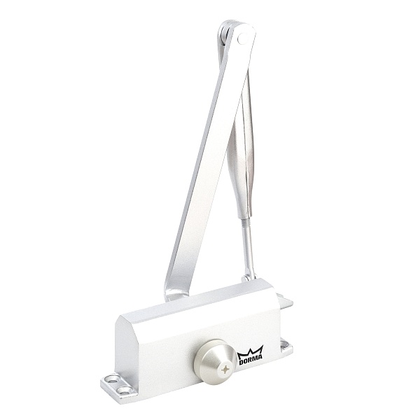Доводчик для дверей весом до 45 кг, двухскоростной, угол открывания 180°, установочный размер 132х19 мм, габариты 148х38х57 мм, -15…+40°С, цвет - белый.