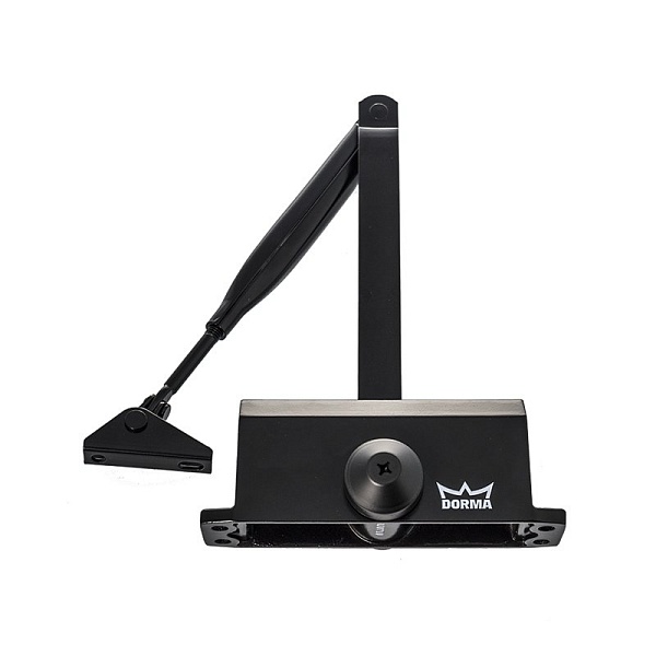 Доводчик для дверей весом до 45 кг, двухскоростной, угол открывания 180°, установочный размер 132х19 мм, габариты 148х38х57 мм, -15…+40°С, цвет - тёмно-коричневый.