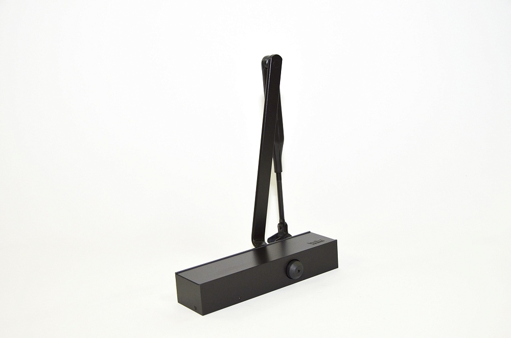 Доводчик для дверей весом до 150 кг, цвет коричневый, габариты (мм) 210х38,5х55, температурный диапазон (град.С)-35..+40 двухскоростной.