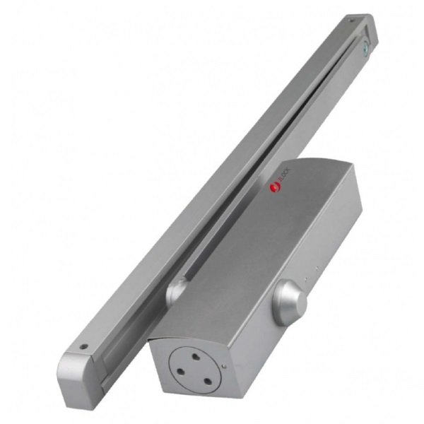 Доводчик со скользящей тягой для дверей весом до 45 кг, двухскоростной, демпфирование открывания - ветровой тормоз, габариты 220х55х42 мм, -45...+60°С, цвет-бронза.