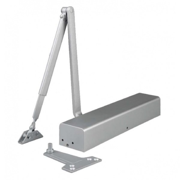 Доводчик для дверей весом до 150 кг, двухскоростной, демпфирование открывания - ветровой тормоз, установочный размер 305х19 мм, габариты 325х46,5х52 мм, -45…+60°С, цвет - серебро.