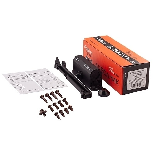 • Универсальность установки – на левые и правые двери; Материал корпуса - силумин, поршень и пружина выполнены из высокопрочной стали. Модель 510 может быть установлена на двери от 15 до 60 килограммов. Класс доводчика: EN1-8