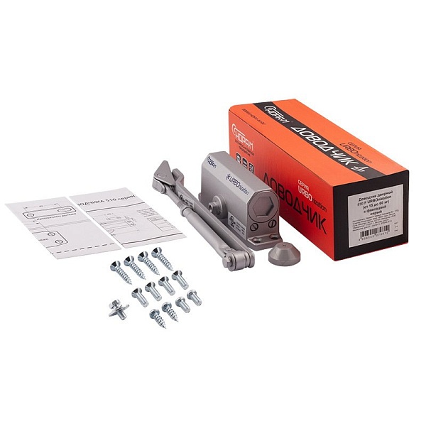 Дверной доводчик 510F с функцией фиксации двери в открытом положении предназначен для установки на межкомнатные и входные двери весом от 15 до 60 кг.
