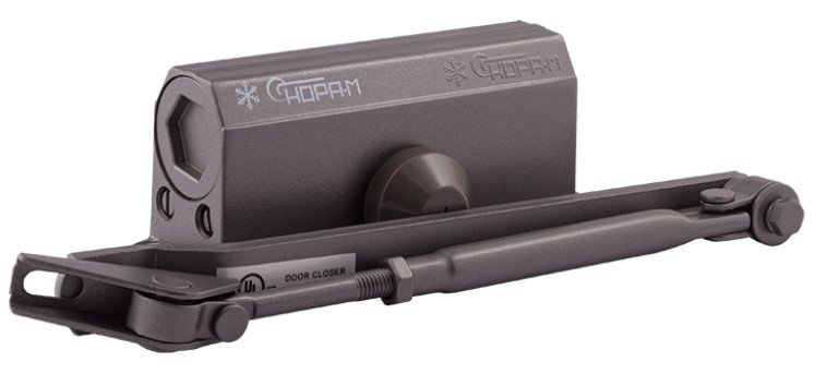 Специальное гидравлическое масло обеспечивает работоспособность механизма в различных температурных условиях, от –45 до +60˚С. Устройство имеет регулировку скорости закрытия и довода полотна.