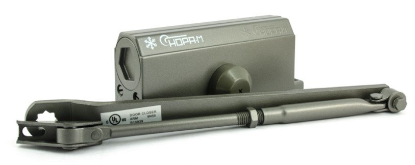 Доводчик предназначен для дверей весом 50–80 кг, изготовленных из дерева, пластика, стекла, а также для лёгких металлических дверей. Рекомендуется как для межкомнатных, так и для нетяжёлых входных дверей. Длина рычага этой модели позволяет использовать изделие на дверях с полотном нестандартной ширины. Угол открытия двери может меняться от 90˚ (при ширине дверного полотна 1100 мм и его весе 80 кг) до 180˚ (при ширине 950 мм и весе 60 кг).