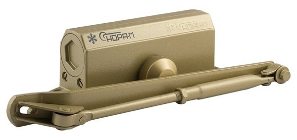 Доводчик с фиксацией: при распахивании двери на 90 и более градусов, механизм удерживает полотно двери открытым.