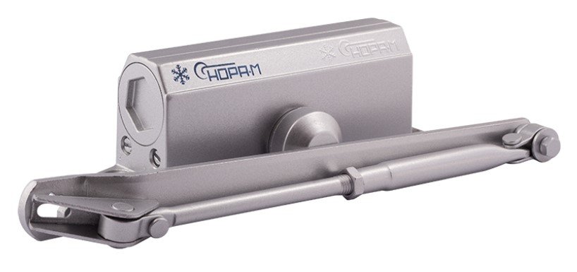Доводчик с фиксацией: при распахивании двери на 90 и более градусов, механизм удерживает полотно двери открытым.