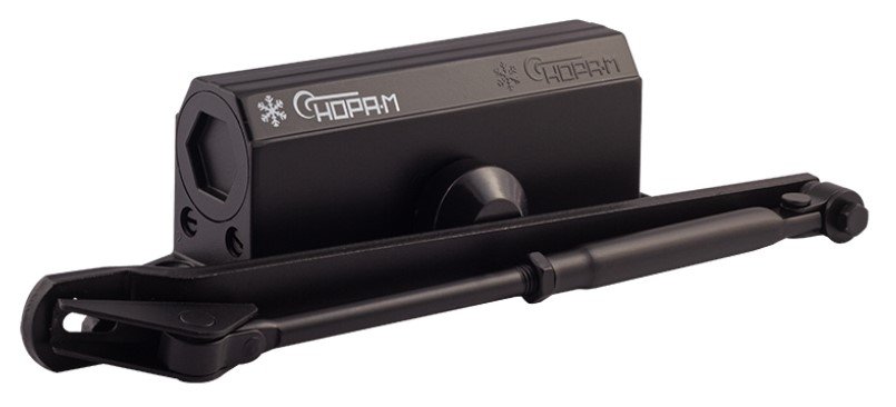 Доводчик с фиксацией: при распахивании двери на 90 и более градусов, механизм удерживает полотно двери открытым.