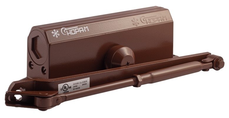 Универсальный дверной доводчик уличный морозостойкий, предназначен для дверей левого и правого открывания. Устанавливается на тяжёлые входные двери весом от 80 до 120 кг. Данная модель разработана с учетом особенностей эксплуатации в российских условиях. Диапазон рабочих температур от –45° до +60°C.