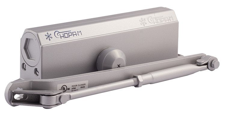 Модель 5S – доводчик дверной морозостойкий, предназначен для установки на входные металлические и другие тяжёлые двери (весом от 120 до 160 кг). Скорость закрывания двери при установке может быть отрегулирована в диапазонах от 180˚ до 18˚ и от 18˚ до 0˚ при помощи винтов на корпусе доводчика.