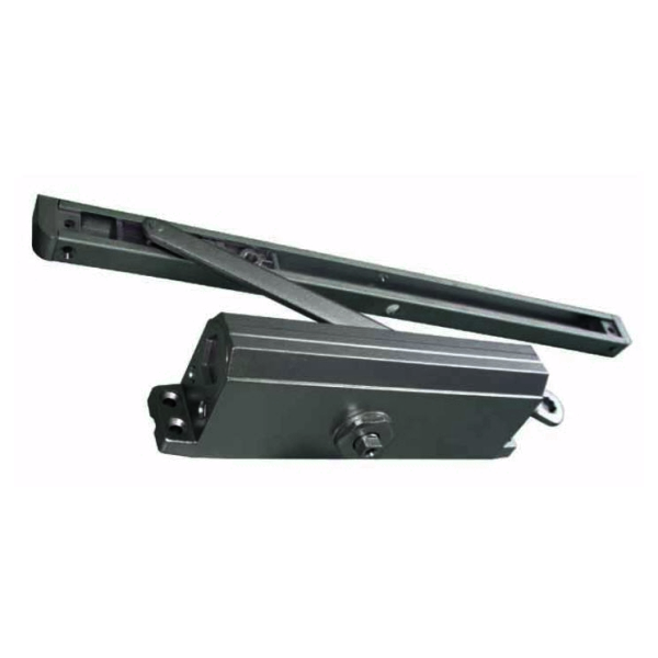 Доводчик для дверей весом до 120 кг, двухскоростной, фиксация открытого положения, установочный размер 230х19 мм, габариты 248х73х45 мм, -35...+40° С, 2,3 кг, цвет - темно-серый