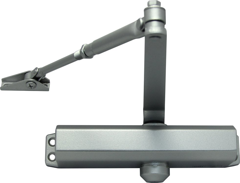 Доводчик для дверей весом до 120 кг, двухскоростной, установочный размер 230х19 мм, минимальная температура -51°С, цвет - серебро