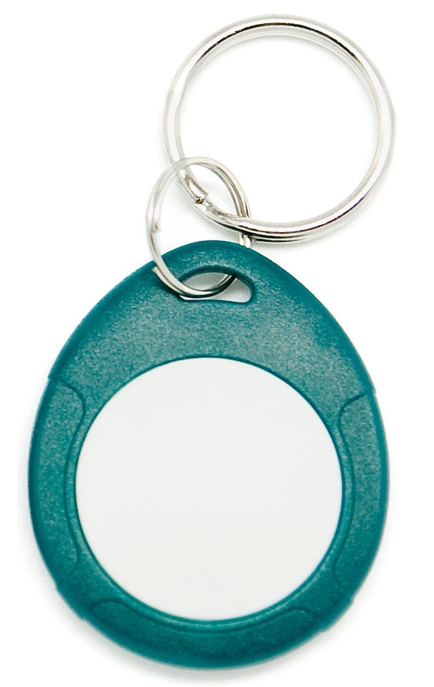 Брелок Mifare, двухцветный зелёный + белый (обрамление + круг), с железным кольцом.