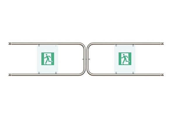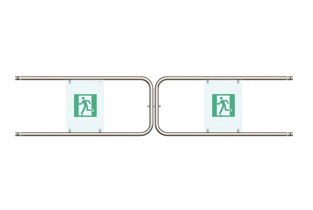 Комплект створок для двойной распашной секции ограждения с механическим фиксатором, с шарнирами и с заполнением с пиктограммами. Ширина прохода 2600мм. Материал - нержавеющая сталь (AISI304).