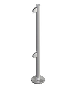 Стартовая стойка из 48 мм нержавеющей трубы (AISI 304) на фланце, ДВА зажима на одной стороне стойки установлены для стекол с закругленными углами радиусом R=5 мм. Расстояние между зажимами по вертикали 600 мм
