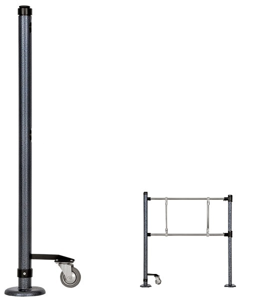 Стойка фиксатора колесная с креплением к полу ограждения "ОС2акп" двухуровневая односторонняя крашеная. С двумя муфтами для горизонтальных перемычек диаметром 25мм и дополнительным фундаментным фланцем.