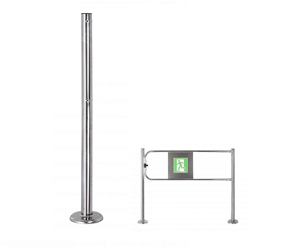 Универсальная стойка ограждения УС2 Хром, имеющая по два отверстия для крепления муфт с трех сторон под углом 90º. На четвертой стороне расположен паз, для стопора створки калитки антипаники К12 Материал - хромированная сталь.