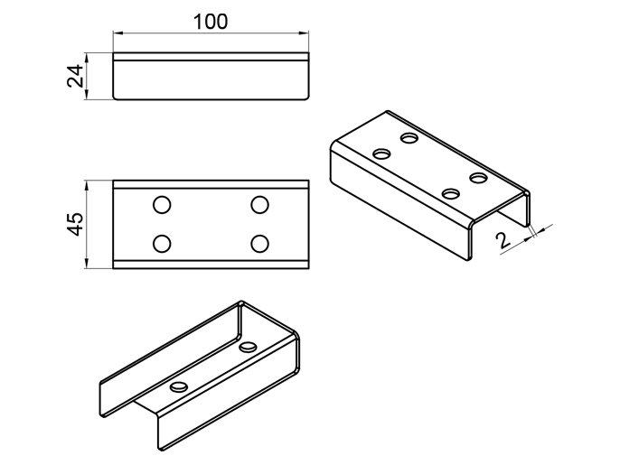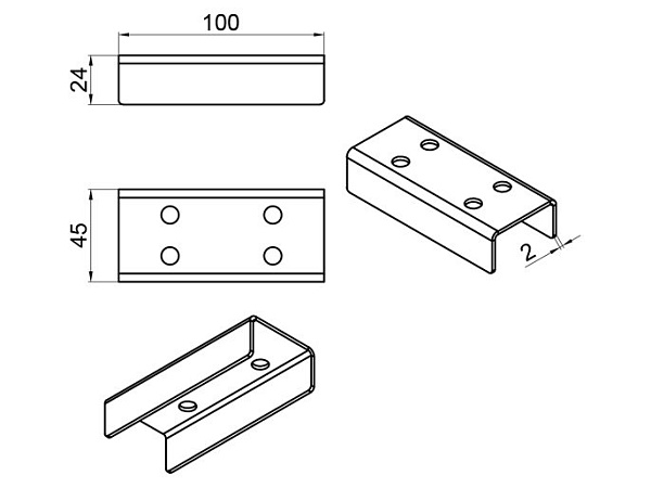 Накладка Т - образная (секция - секция - секция). Материал ⎼ нержавеющая сталь AISI 304.