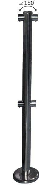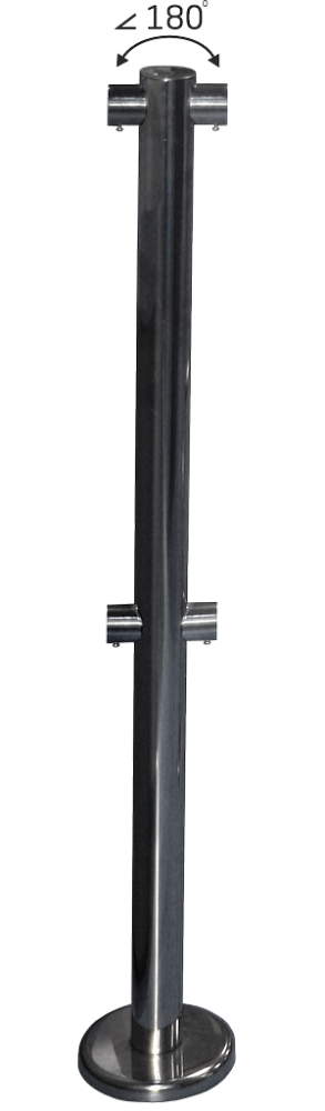 Стойка ограждения средняя хром. с четырьмя муфтами для крепления труб ограждения 25 мм под 180 град. Высота 1 м, диаметр 50 мм.