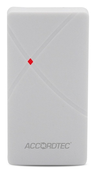 Считыватель бесконтактных идентификаторов формата Mifare, расстояние считывания до 5 см, интерфейс Wiegand 26/34, светодиодная и звуковая индикация, DC 9...16 В, 30 мА, IP68, -45...+60 ⁰С, 41,5х17х81,5 мм, ABS пластик, серый