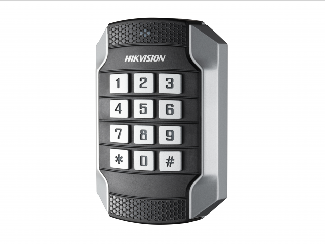 Считыватель Mifare карт с механической клавиатурой, 13,56 МГц; дальность считывания: 30-50 мм; поддержка протоколов RS-485 и Wiegand (-26, -34); DC 12 В; 6 Вт; -40...+70 °C; IP65; 118×76×23 мм; пластик/металл