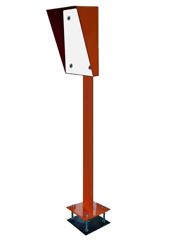 Прямая стойка для установки считывающих устройств СКУД, высота 1270 мм, труба 30х60 мм, защитный кожух 300х400 мм с диэлектрической пластиной, основание 180х180 мм, электрический клеммник, закладная пластина для бетонирования + комплект оцинкованного крепежа, цвет оранжевый по шкале RAL 2008.