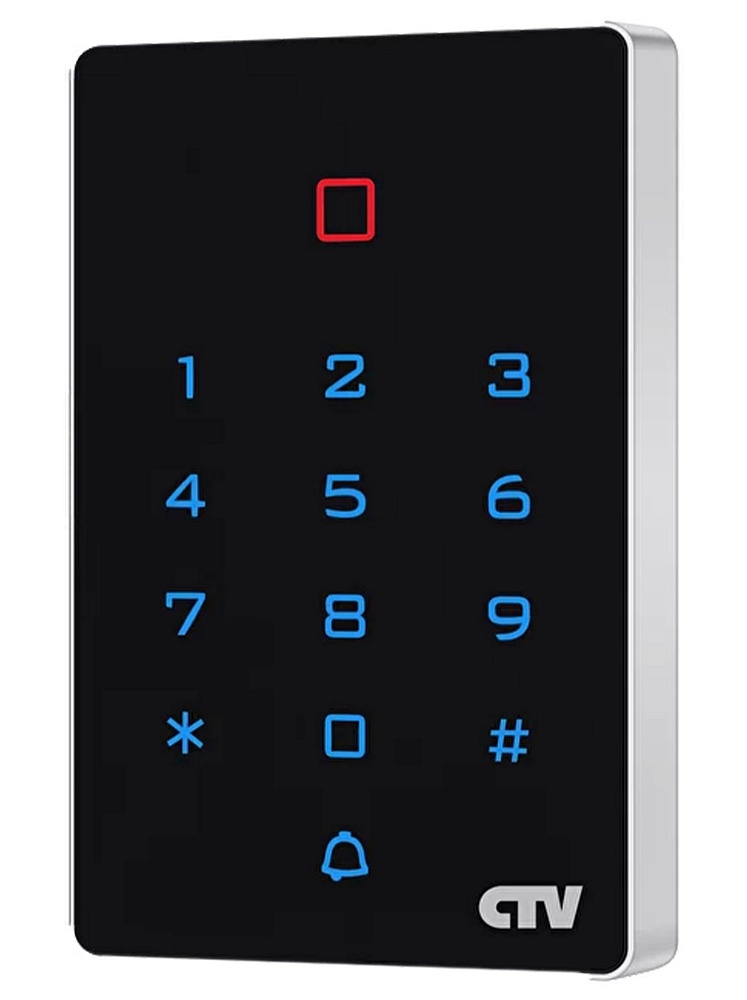 Автономный контроллер со встроенным считывателем EM-Marine и сенсорной клавиатурой, 2000 пользователей, дальность считывания до 8 см, вых. интерфейс Wiegand 26/34; светодиодная и звуковая индикация; возможность удаленного управления по Wi-Fi через приложение CTV HOME; реле управления замком (НО/НЗ); DC 12-24В; 0,3А; IP-65; -40...+60°С (установка внутри помещений); 110х70х15 мм; вес: 0,1 кг; корпус: ABS пластик; цвет: черный.