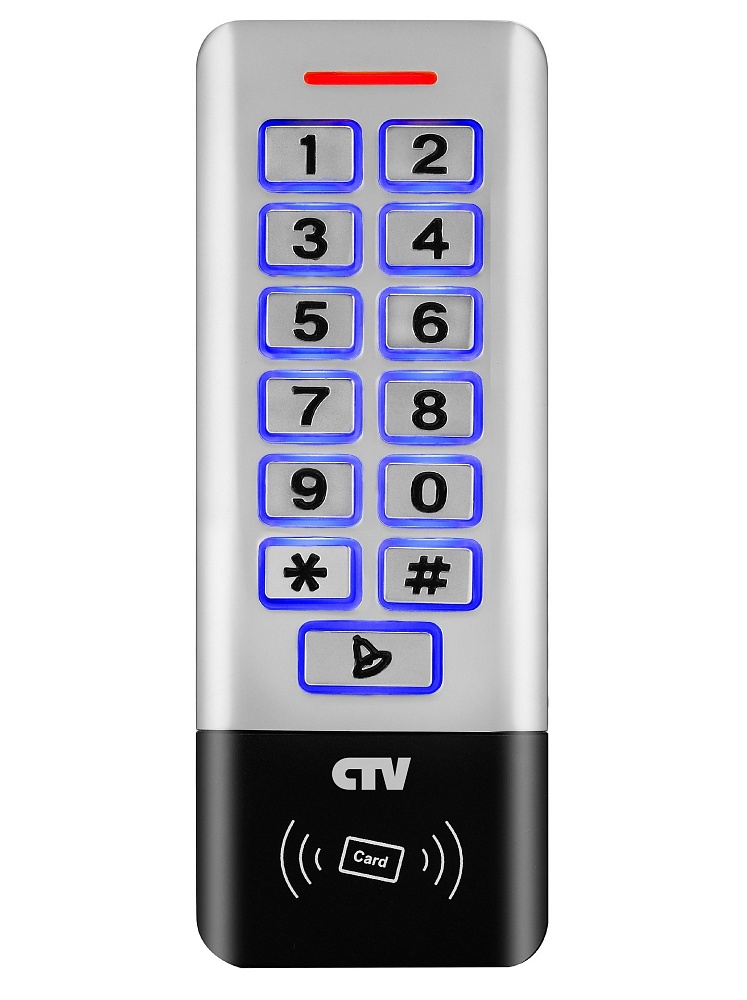 Автономный контроллер со встроенным считывателем EM-Marine и кодонаборной панелью, 2000 пользователей, дальность считывания до 8 см, вых. интерфейс Wiegand 26/34; светодиодная и звуковая индикация; реле управления замком (НО/НЗ); DC 12-24В; 0,3А; IP-68; -40...+55°С; 110х40х20 мм; вес: 0,2 кг; корпус: металл; цвет: серебро.