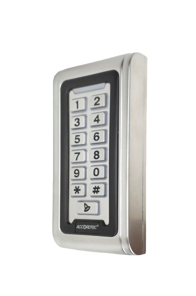 Кодовая панель со встроенным считывателем карт EM-marine, память на 2000 карт, IP68, 12V DC, wiegand 26 для доп. считывателя, антивандальный корпус, подсветка кнопок, - 45°С~+ 60°С , нержавеющая сталь, 120x58x20 мм