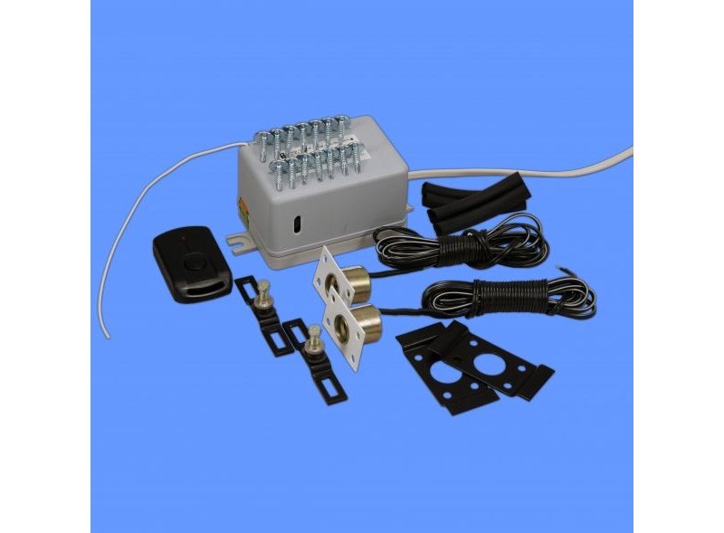 Promix-FRS.2D.01 Электромеханический замок с системой дистанционного управления для установки на ДВУдверные холодильные шкафы (KZBL-S1). Универсальная конструкция, подходит практически ко всем моделям шкафов. Состав комплекта: замок электромеханический (2 шт), кронштейн (2 шт), ригель (2 шт), самоклеющийся резиновый уплотнитель, контроллер дистанционного управления, радиобрелок, комплект крепежа, шнур для удлинения шнура противовеса, руководство по установке.