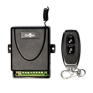 Комплект управления по радиоканалу с динамическим кодом (приемник + брелок), дальность до 30 м, память до 6 брелоков, 2 реле НЗ/НР, триггерный и импульсный режимы, звуковая индикация срабатывания реле, частота 433 МГц, 12 В/24 В DC, 12 мА