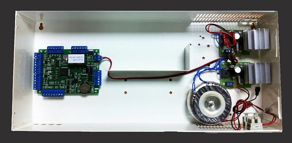 Базовый контроллер Gate-8000 в корпусе с двумя ИБП (для питания замка и контроллера) и местами под аккумуляторы 7Ач.