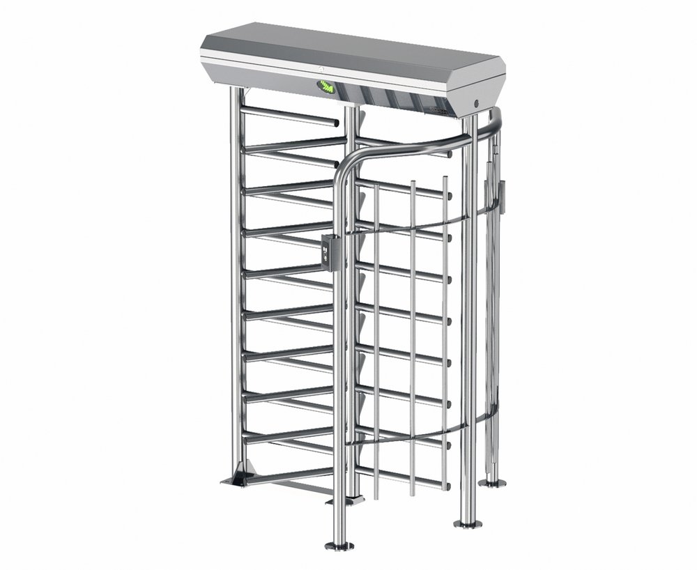 Полноростовой роторный турникет, ширина планки 550мм, встроенные считыватели Em-marine/Hid, Wiegand 26, всепогодное исполнение, "сухие контакты на плате управления", 220 В, 50 Гц, IP54, -28 - +60°C. ПДУ и ИК-пульт в комплекте. Материал корпуса - нержавеющая сталь, 1400х1395х2220 мм, 200 кг.