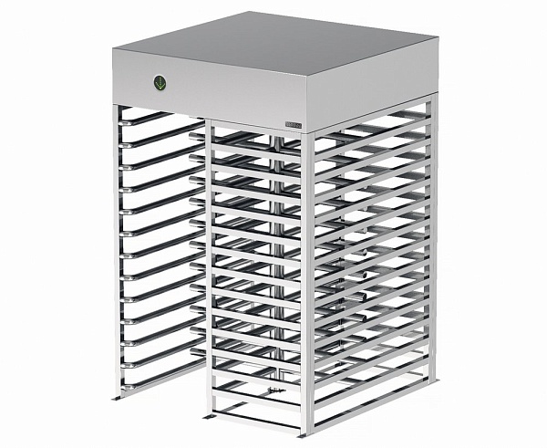 Полноростовой роторный турникет, ширина планки 600мм, встроенные считыватели Em-marine/Hid, Wiegand 26, всепогодное исполнение, "сухие контакты на плате управления", 220 В, 50 Гц, IP54, -30 - +70°C. ПДУ и ИК-пульт в комплекте. Материал корпуса - нержавеющая сталь, 1500х1500х2300 мм.