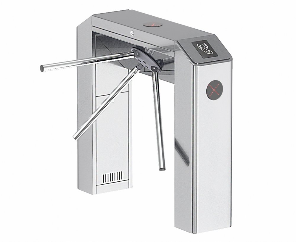 Тумбовый турникет трипод с автоматическими планками антипаника, ширина планки 570мм, встроенные считыватели Em-marine/Hid, Wiegand 26, 220 В, 50 Гц, IP54, -25 - +60°C. ПДУ и ИК-пульт в комплекте. Материал корпуса - нержавеющая сталь, 1100х280х980 мм, 46 кг.