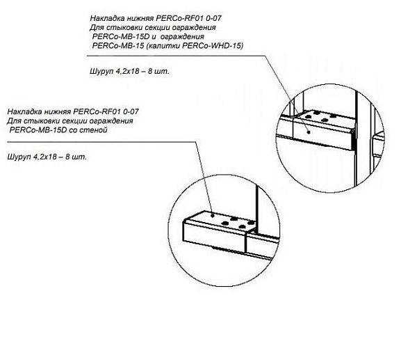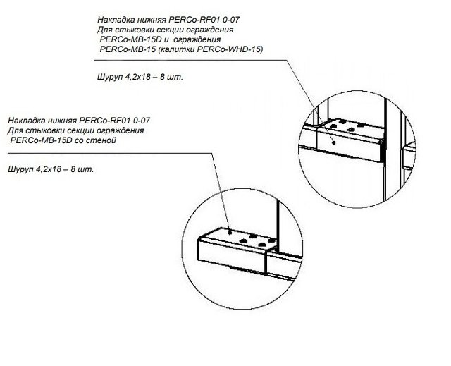 Накладка нижняя для стыковки дополнительной секции ограждения PERCo-MB-15D с секцией PERCo-MB-15 / калиткой PERCo-WHD-15 или со стеной