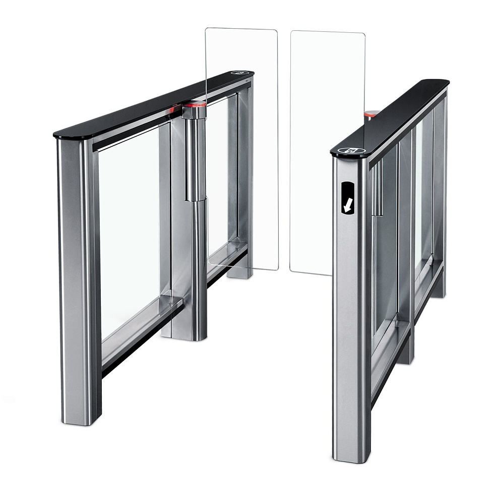 Турникет с распашными створками, ширина прохода 650 или 900 мм, пропускная способность в режиме однократного прохода 60 чел/мин, нержавеющая сталь, 24 В, 6,5 А (на каждый элемент турникета), в комплекте: 2 стойки, пульт дистанционного управления. БЕЗ створок и крышек.
