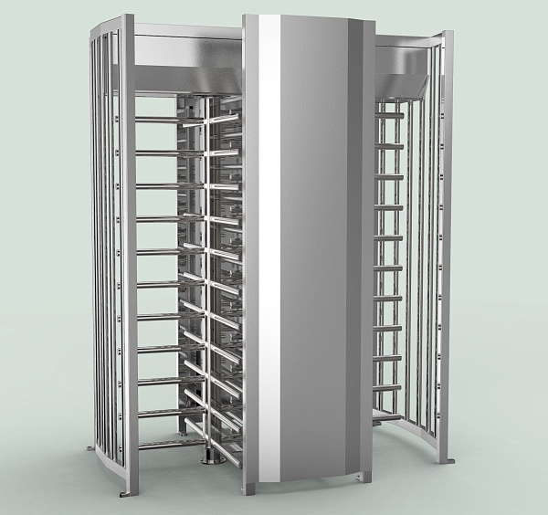 Турникет электромеханический полноростовой двухпроходный 4-х лопастной 90°, уличный вариант, ширина прохода 2х550 мм, 12 В, 7 А, обогрев 24 В, 5 А, -30...+50° С, 2210х1500х2440 мм, корпус: нержавеющая сталь, световая индикация. В комплекте: турникет, крыша, пульт управления, система обогрева с блоком питания 24 В.