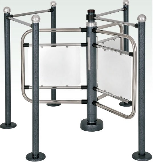 Электромеханический полуростовый трех лопастной турникет. Лопасть -дуга из стальной трубы диаметром 32 мм., пластиковая белая вставка. Высота 1095 мм., диаметр вращения 1260мм. Ограждение поставляется отдельно