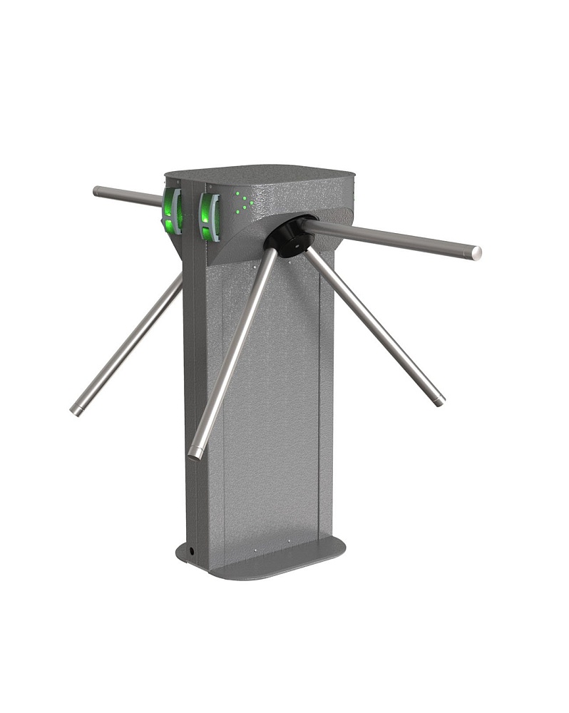 Турникет-трипод (электронная проходная), ширина перекрываемого прохода 2х745 мм; имеет встроенный сетевой контроллер Sigur E300 (50 ключей, 40000 событий, 500 зон, интерфейс связи Ethernet)и считыватели FLY A3 EH; пропускная способность: в режиме однократного прохода 60-100 чел./мин.; от -30 °C до +50°C (уличное исполнение);  - 12±2B DC, 3А, 1470x780х990 мм.(Планки и программное обеспечение приобретаются отдельно).