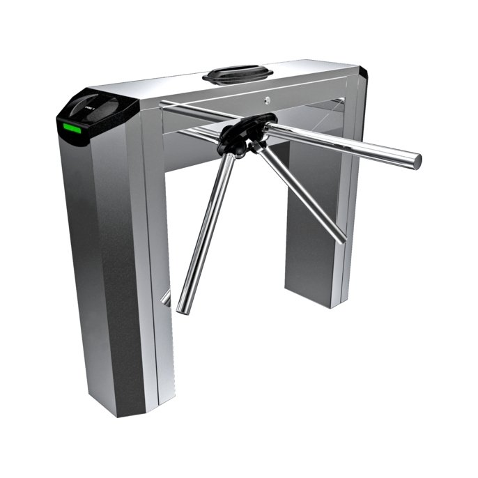 Турникет тумбовый моторизованный из нержавеющей стали. Индикация прохода. Планки с электродоводкой, автоматической системой антипаники и автоматическим поднятием штанг. Встроенный блок питания, IP44, размер тумбы 250х950х1200 мм.