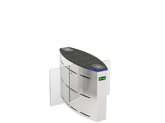 Центральный модуль раздвижного турникета. Светодиодные указатели прохода и направления. Корпус - нержавеющая сталь. Сервопозиционный электропривод створки с определением препятствий и автоматической разблокировкой при отключении электроэнергии. Створка из 10 мм закаленного стекла. Ширина прохода 900 мм. Высота створки 900 мм. Время открытия 1.3 сек. Встроенный блок питания. IP44.