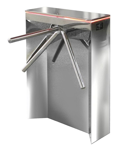 Турникет полуавтоматический, ширина зоны прохода 600 мм, 12…14 В DC, 1 А, 720x740x1002 мм. Нержавеющая сталь.
