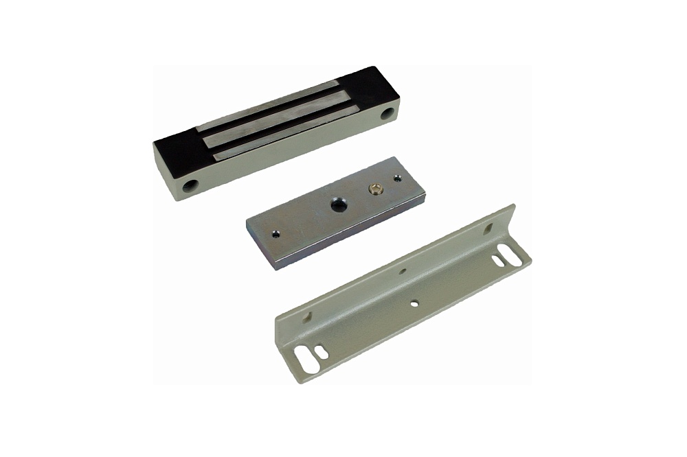 Электромагнитный влагозащищенный замок IP67, сила удержания 180 кг, 12 В/0,4 А, 180х40х25 мм, -30...+50°С,  масса 1,6 кг. Цвет серый, в комплекте с уголком