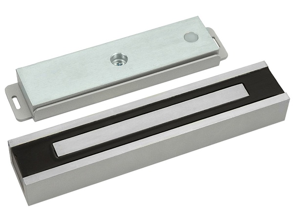 Сила удержания 350 кг, 12/24 В, 0,58/0,29 А, -60...+50 ˚С, IP67 влагозащищенный, антикоррозионное исполнение, 215x46,5x27 мм. В комплекте: корпус замка, монтажная пластина, якорь, переходная пластина для установки якоря без сверления сквозного отверстия на двери (комплект 350P)