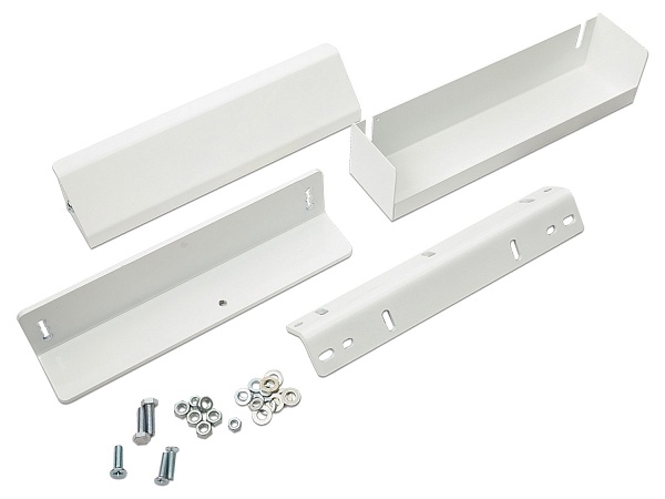 Комплект монтажа для крепления замков AL-300/400PR на дверях, открывающихся вовнутрь. Комплект монтажа состоит из уголка корпуса, уголка якоря, кронштейна, кожуха, кожуха кронштейна и элементов крепежа.