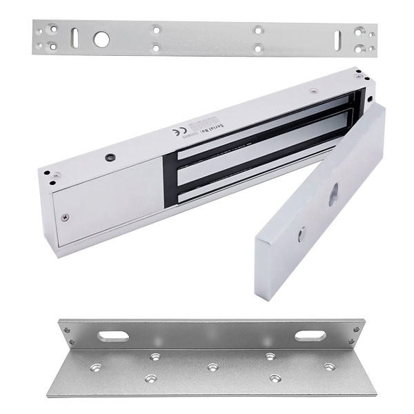 Электромагнитный замок, усилие удержания на отрыв - 350 кг. U-пит. 12В, I-потр. ≥450 мА; IP54, t-раб -40...+60°С, габ.размер 240х56,5х29 мм. Вес - 2,1 кг.