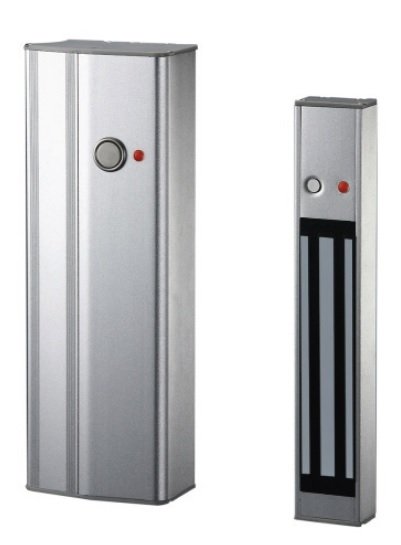 Накладной электромагнитный замок в ручке двери. Сила удержания 300 кг, 12/24 В, 450/235 мA, индикатор работы, датчик Холла, ручка 300х92х58 мм, магнит 274х46х30 мм
