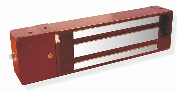 Сила удержания 450 кг; 12 В/0,6А; уголок в комплекте; кнопка аварийной разблокировки замка; 275х75х47 мм